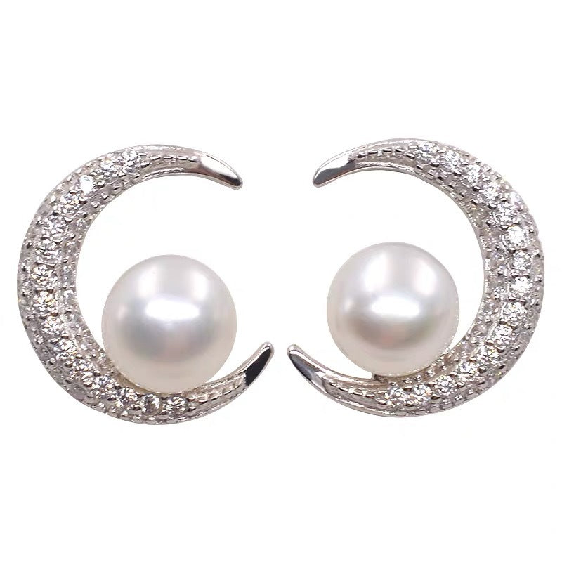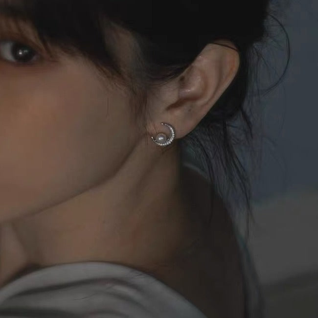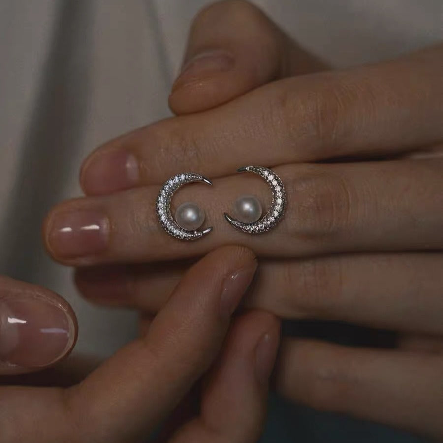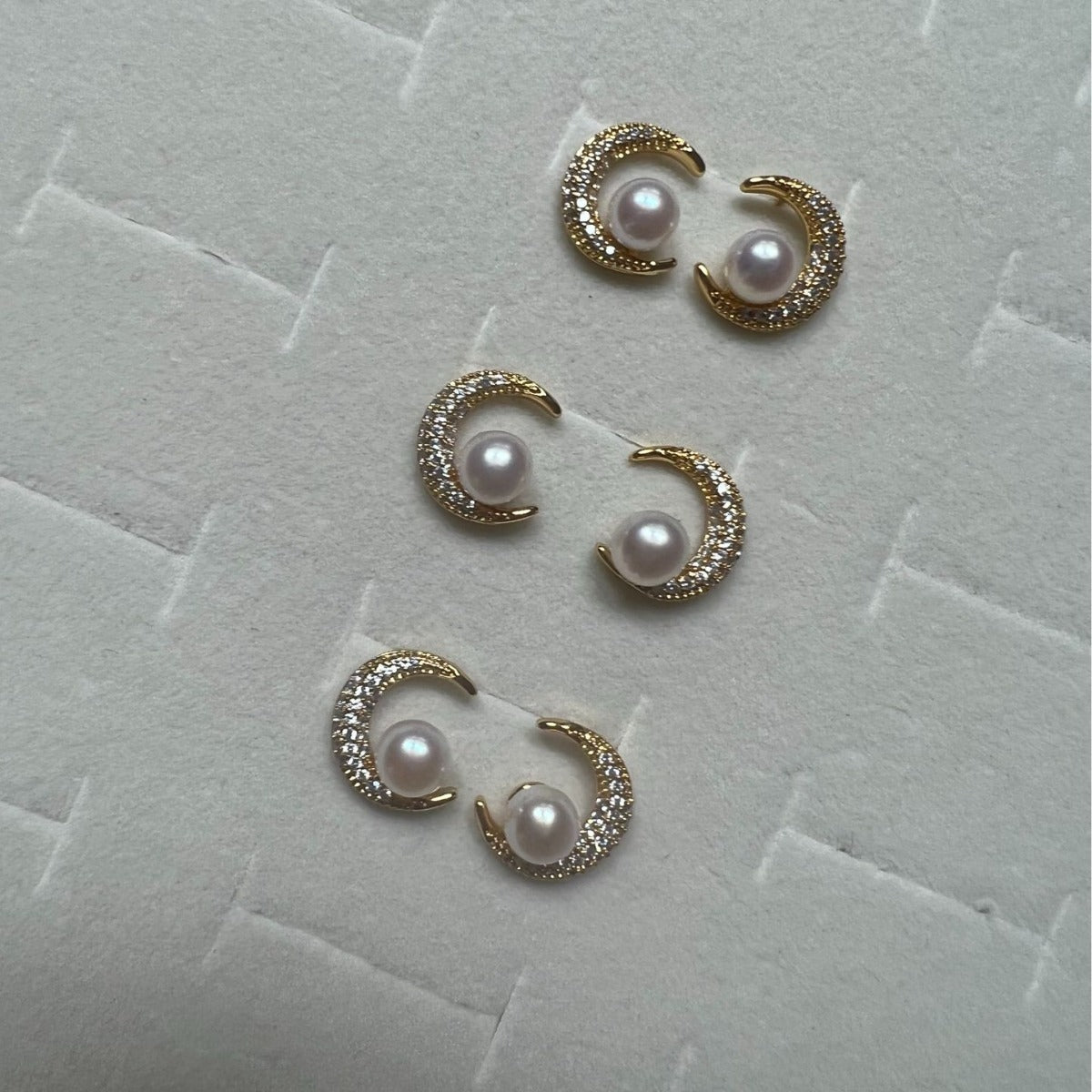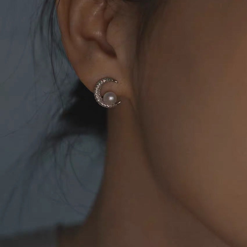These celestial-inspired earrings pair the timeless glow of 6A-grade natural freshwater pearls with a crescent moon design adorned in micro-pavé zircon brilliance. The result? A delicate harmony of romance and elegance—made for dreamers with taste.