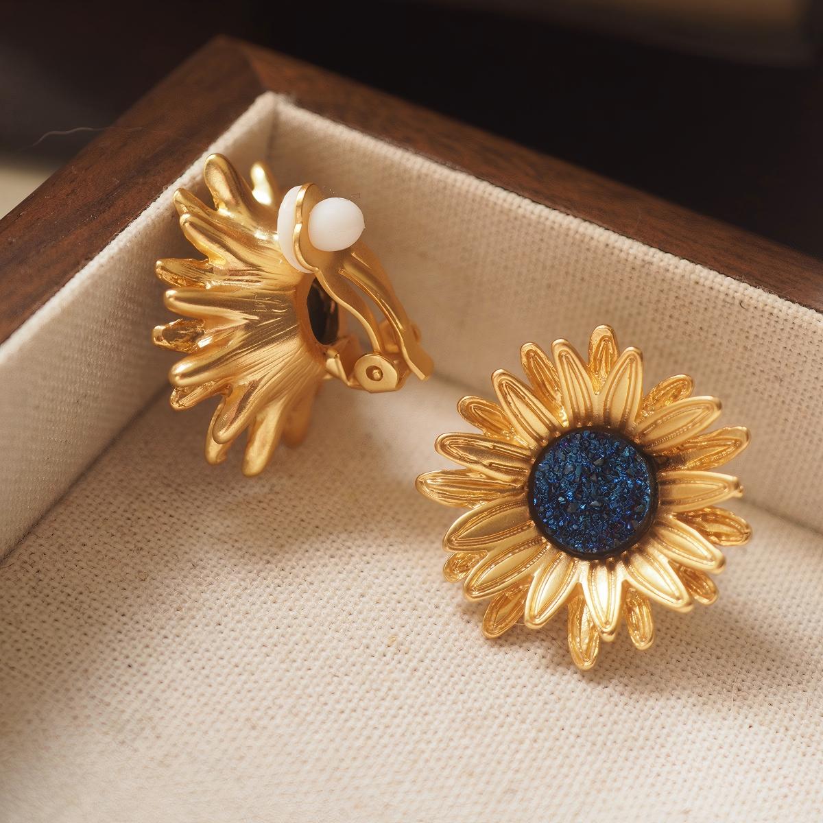 Koyace Vintage Golden Sunflower Ear Clip & Earrings